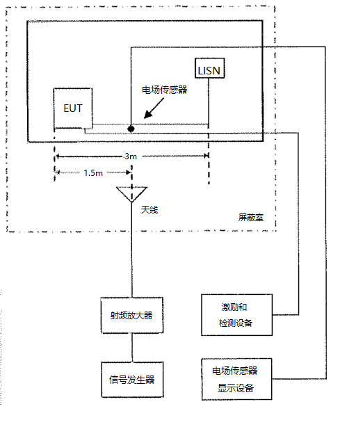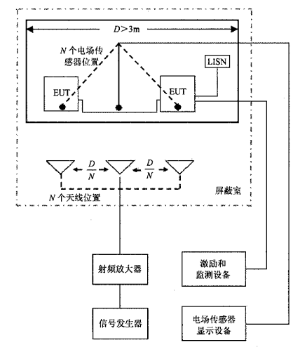 电场发生器是电磁兼容(EMC)测试中,为电场辐射抗扰度测试提供实验所需稳定电场环境的主要设备。辐射抗扰度(Radiate Susceptibility,简写RS),又称为辐射敏感度,是 EMS 测试的最基本项目之一,指各种装置、设备或系统,在存在辐射的环境下,抵抗辐射的一种能力;敏感度越高,抗干扰的能力越低。GJB 151B 和 MIL-STD-461 中,其中项目 RS103 是专门关于电场辐射敏感度的测试;而信号发生器、功率放大器和电场发 生器(也叫发射天线),则是该项测试中重要的三种设备。