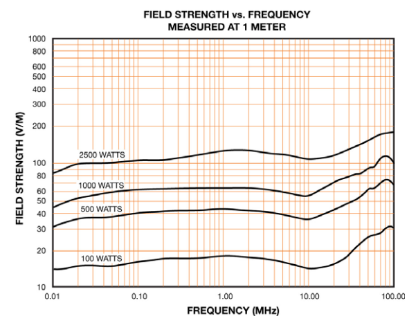 图 5-2 同类型进口电场发生器电场强度曲线(测试距离:1米)